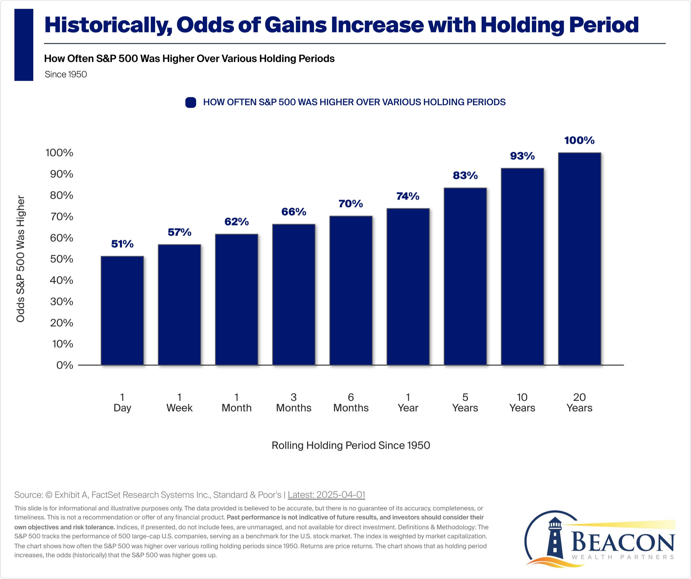By truly viewing yourself and your strategy as a long-term investment plan, you can increase the odds that you will be successful in investing, as shown by our final chart, below: