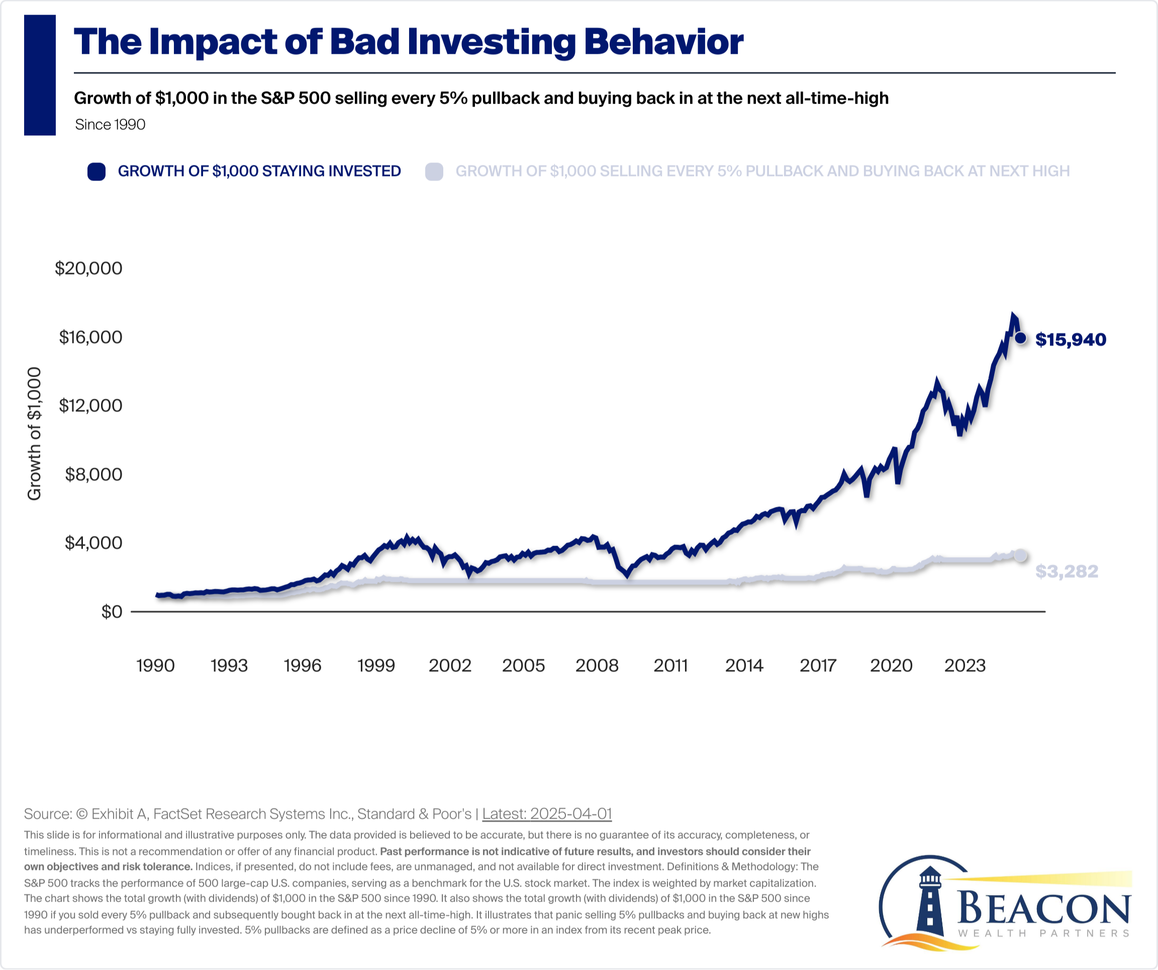 Beacon Wealth Partners, Equitable Advisors and its associates are not affiliated with Standard & Poors, JP Morgan Asset Management and Advisors Capital Management. Blog article is for informational purposes only and should not be interpreted as investment, tax or legal advice. Market timing is a method of investing, it does not guarantee a profit nor protect against a loss. Past performance is not indicative of future results. Indices are unmanaged portfolios of specified securities. Individuals cannot invest directly in an index. PPG-7820173.1 (4/25)(Exp. 4/29)