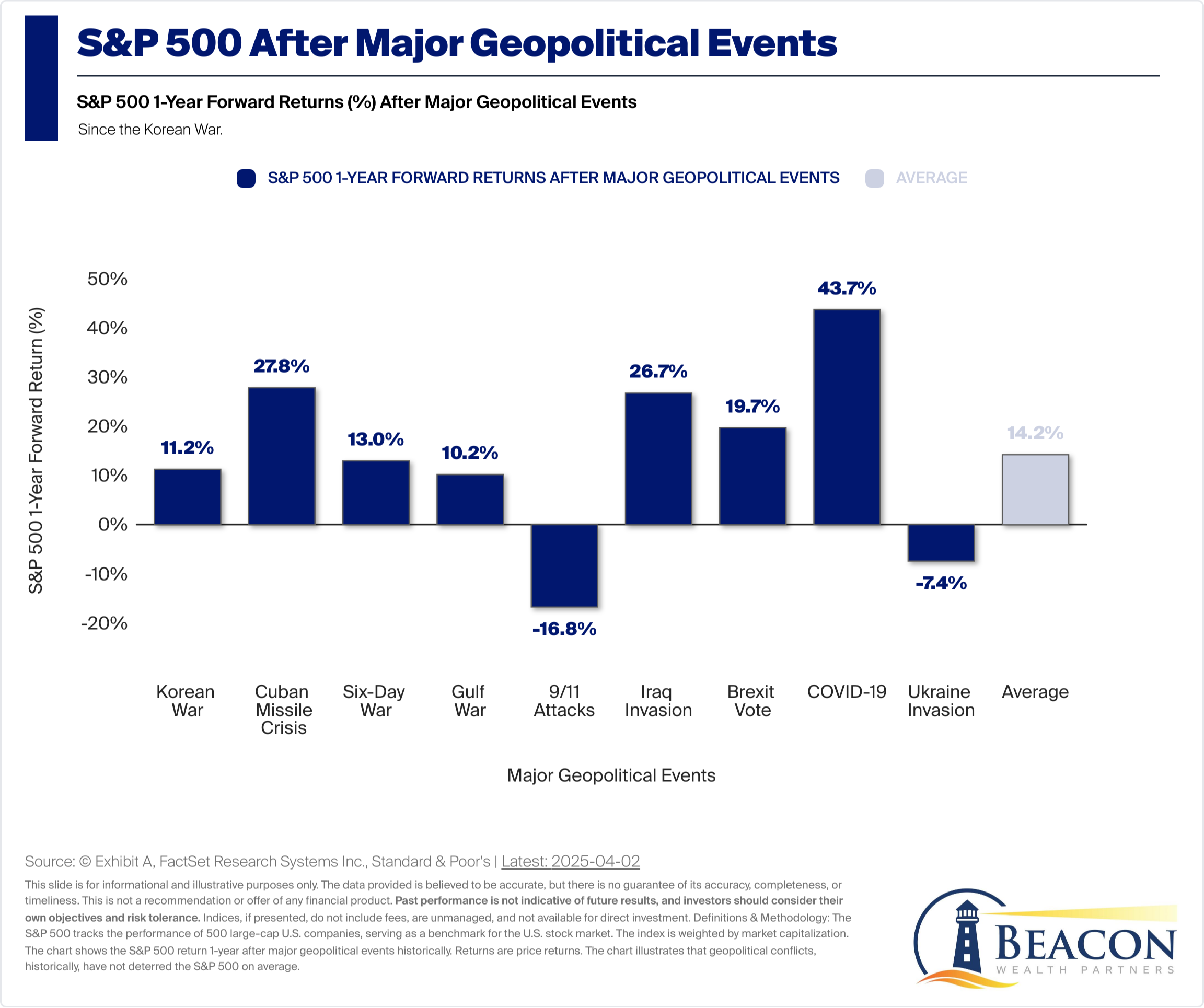 Even though many of these events have been scary, and a lot of them have led to sharp market selloffs, what did the market look like one year into the future? We have a chart on that, too!